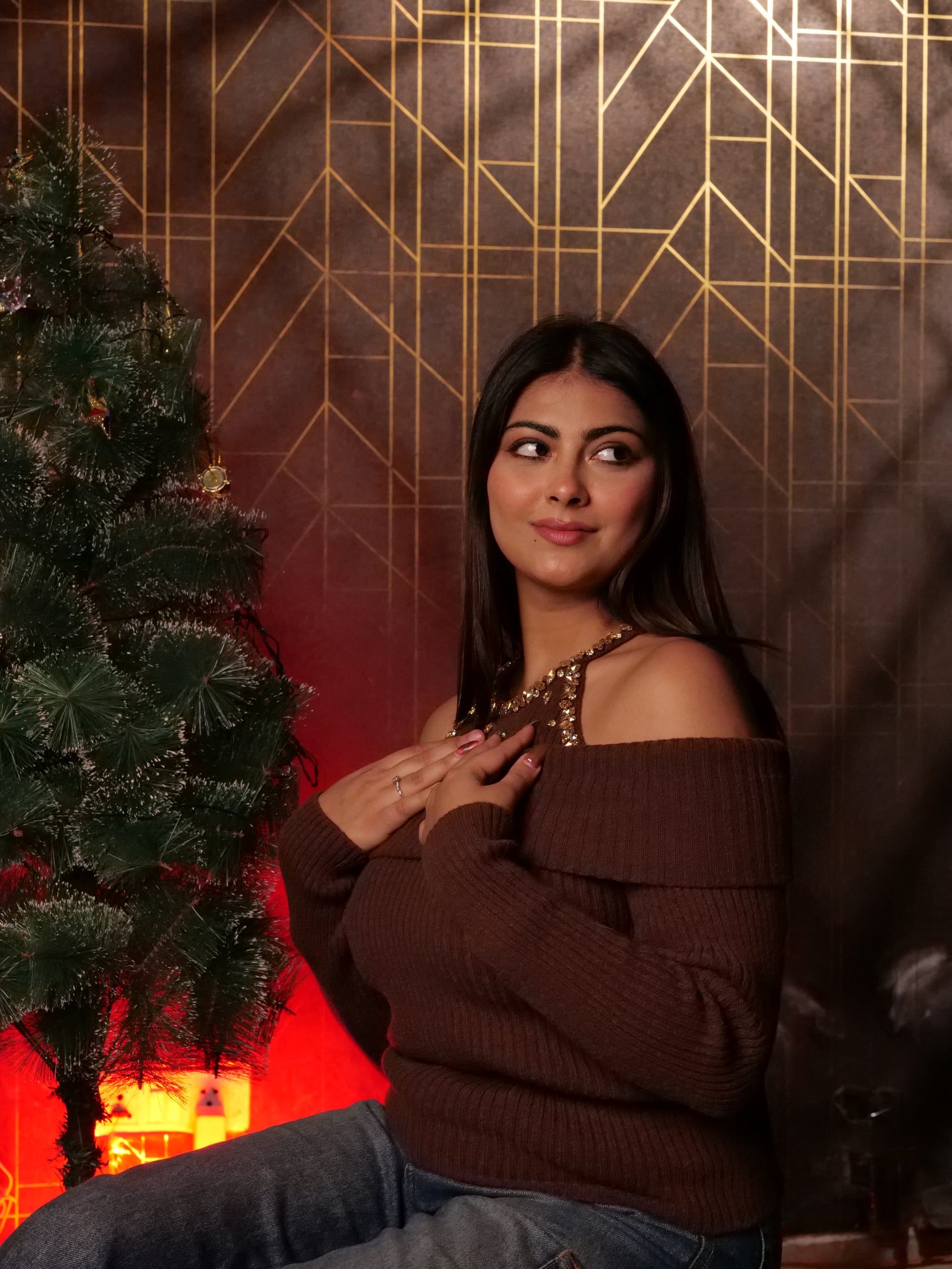 Elevate your wardrobe with this sophisticated off-shoulder top that seamlessly transitions from day to evening. The elegant design features a flattering neckline that showcases the shoulders while maintaining refined appeal. Crafted with attention to detail, this versatile piece pairs effortlessly with tailored trousers, skirts, or denim for a polished look. The off-shoulder silhouette creates a graceful, contemporary aesthetic perfect for both casual outings and special occasions. An essential addition for those who appreciate timeless style with modern sensibility.