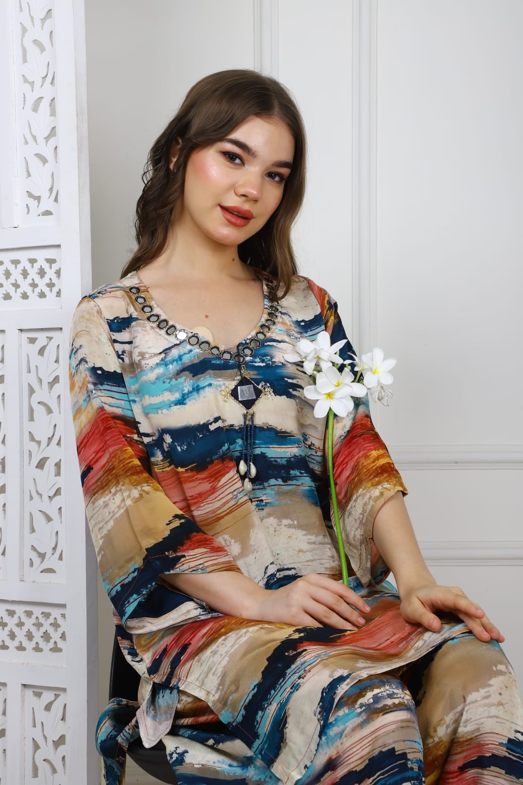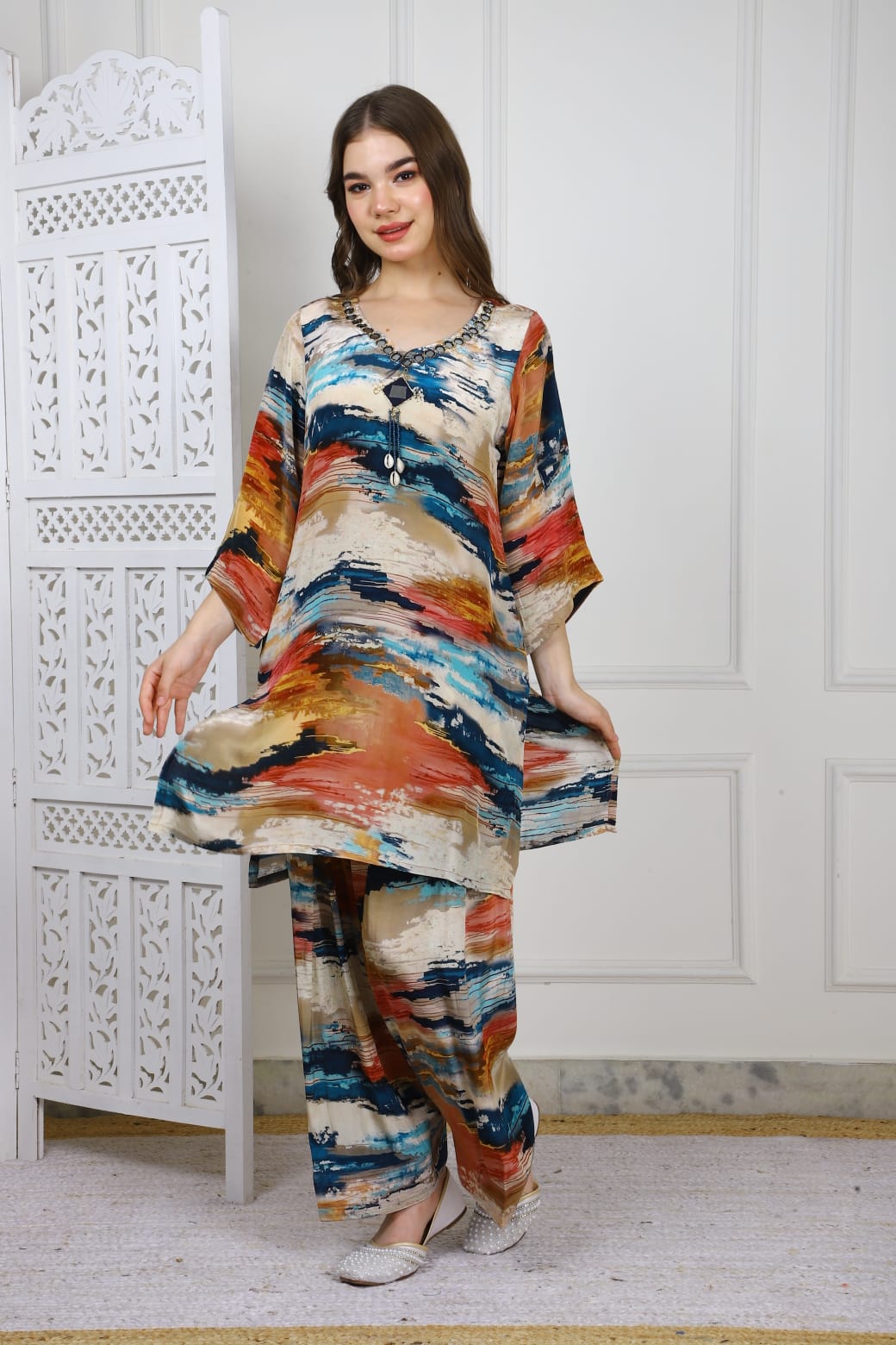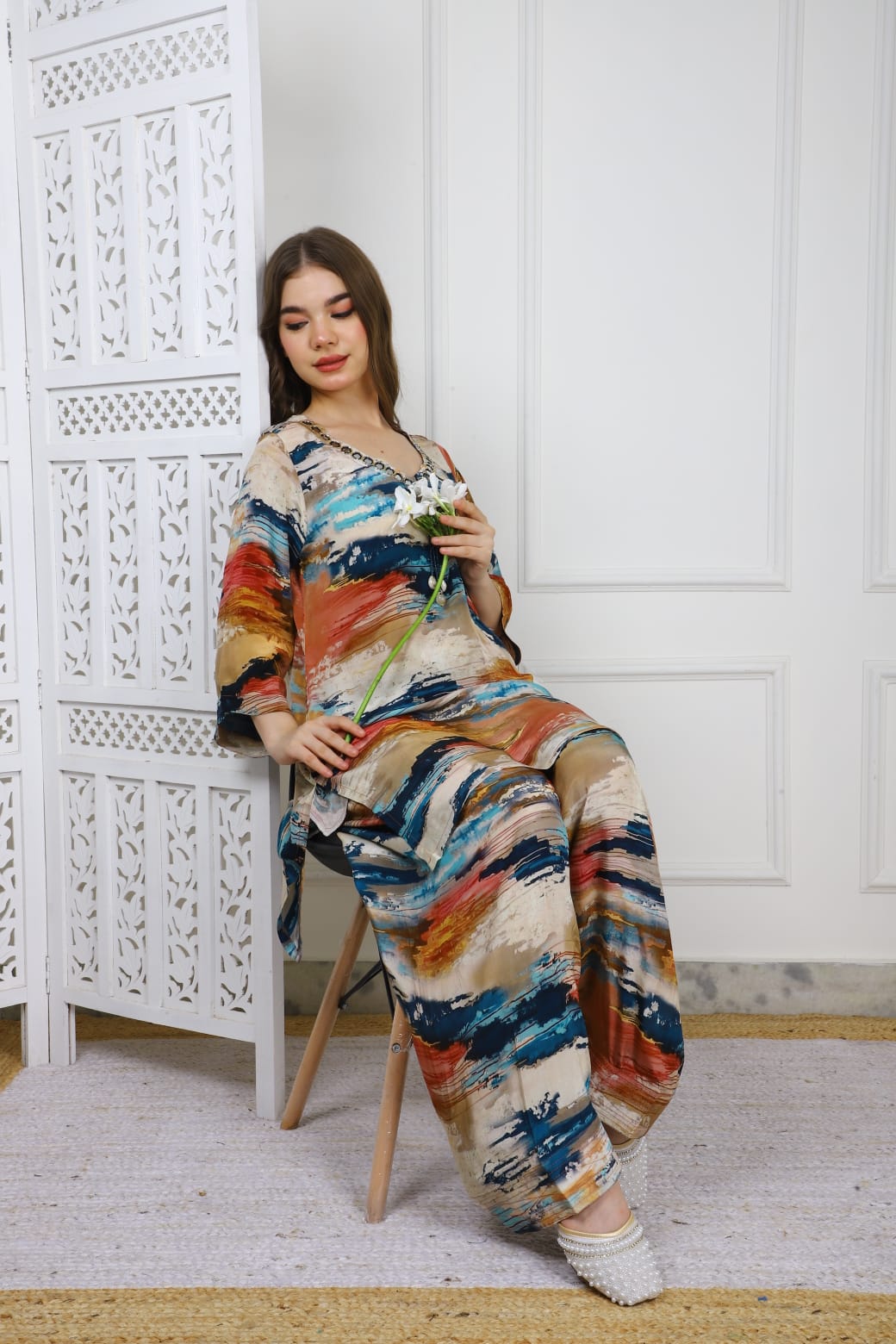 The Frashi Salwar Coord Set TT029 crafted from premium crepe fabric combines elegance with comfort. Its breathable, lightweight texture ensures all-day wearability, while the coordinated design offers a cohesive, stylish look suitable for various occasions. Perfect for those seeking a refined yet effortless ensemble.